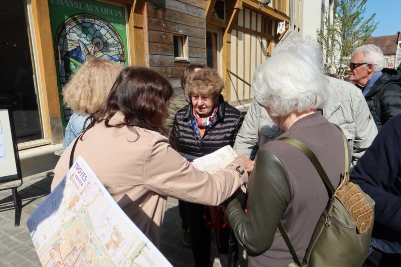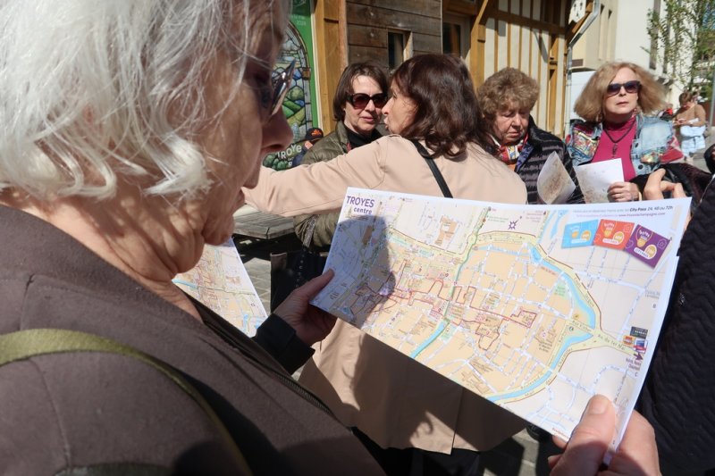 Notre visite s’appelle le « Bouchon de Champagne ». En effet, vue du ciel la ville est comme un bouchon, c’est assez singulier. Nous visionnons un petit film nous expliquant la naissance de Troyes, puis pendant la matinée, nous déambulons dans le vieux Troyes composé d’une multitude de vieilles maisons à colombages.
