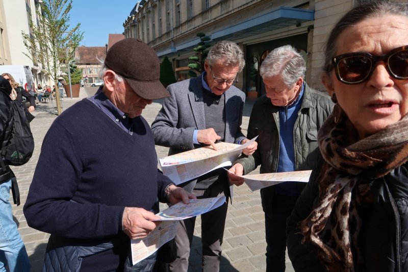 Jeudi matin, départ direction Troyes qui n’est qu’à 30 kms environ de notre lieu de villégiature. Arrivés à Troyes, notre itinéraire prévu est un peu perturbé suite à des travaux: on se perd de vue, on se croise, et même nos amis Rigal se font arrêter par la police! Mais pas d’inquiétude, rien de grave. Tous finissent par trouver le chemin du parking souterrain que même Isabelle dans sa Rolls a osé utiliser.