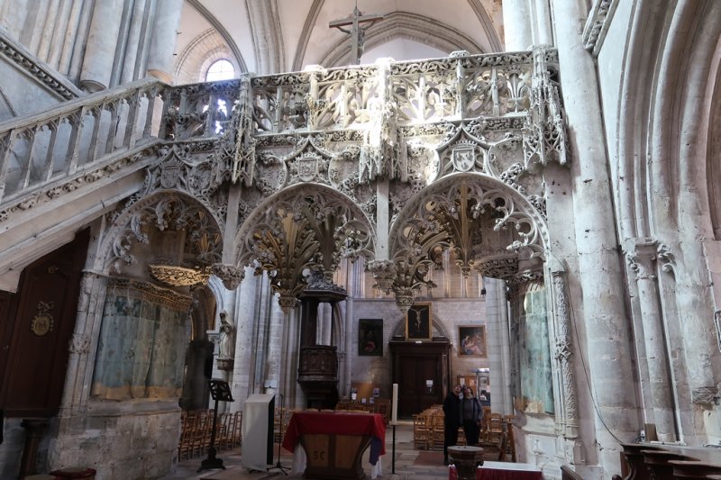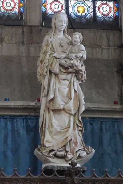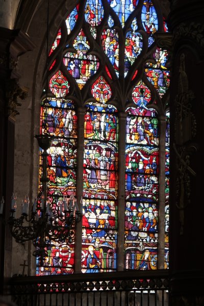 Si ce majestueux vitrail (à gauche) appartient encore à l'église Sainte Madelaine, la Vierge à l'Enfant et ce choeur sont à admirer à l'intérieur de l'imposante cathédrale St Pierre et St Paul non loin de là.