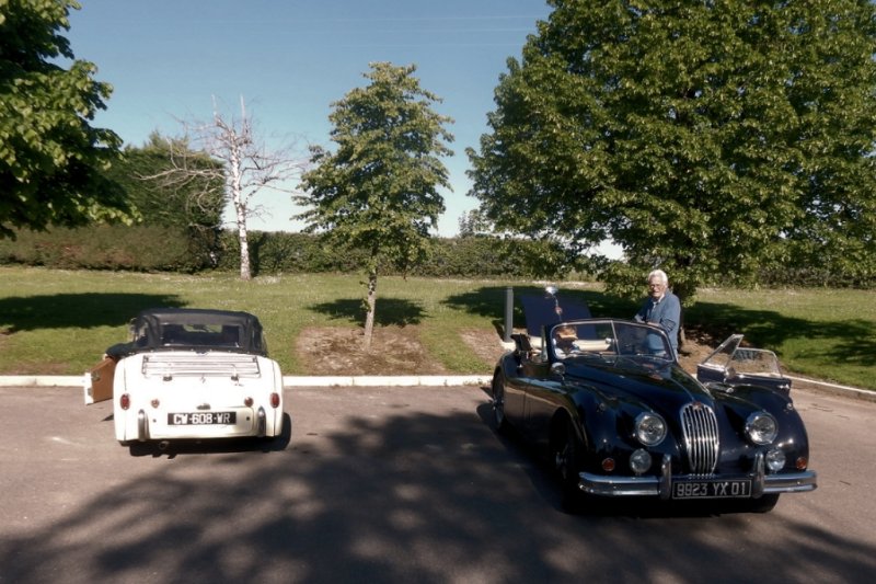 Les bagages retrouvent leur place dans les coffres en ce dernier matin ensemble en vue de partir pour notre dernière visite, à Clairvaux, mais si tous les moteurs démarrent, la boîte de vitesses de la Triumph TR3 de François et Marie refuse obstinément d'offrir tout autre rapport que la marche arrière. Il en seront quittes pour transférer leurs bagages dans l'ample coffre de la Jaguar XJ6 d'Eric et Paola ("les amis suisses" dixit Catherine).
