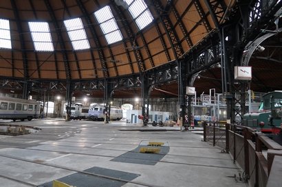 Sagement assis dos aux machines qui ont emmené des millions de vacanciers Français "vers la Côte" les membres du Club font face au coeur de la rotonde et de son pont tournant où évoluent des machines contemporaines. La structure à la légèreté apparente montre tout le génie de Gustave Eiffel dont s'inspire ce montage.