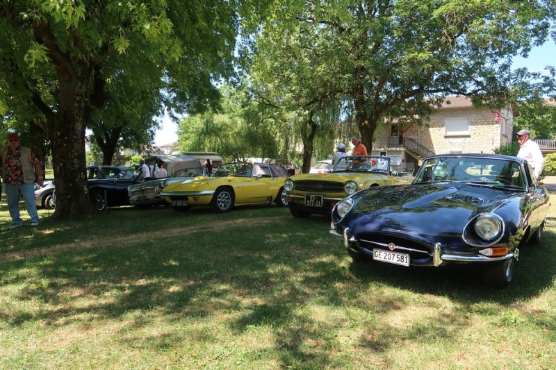 En fin d’après-midi, la E Type dit au revoir à ses amies Lotus, Jaguar, MG, Cooper et Triumph et franchit à nouveau ce beau portail vert avec un petit pincement au carburateurs avant de pointer son nez en direction de Genève, cette fois-ci.