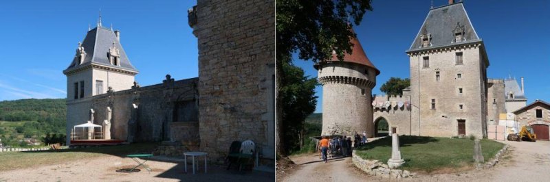 Le détenteur des clefs du château, un monsieur Bottex qui est aussi (et peut être surtout) le producteur local d’un superbe rosé pétillant Bugey Cerdon, nous explique que le château est désormais la propriété d’une courageuse famille Poret qui en fait la restauration. En regardant ces bâtisses depuis la cour, même l’ANLVAiste le plus expert en résurrections admet qu’il y a pire que la restauration d’une Anglaise en état désespéré.