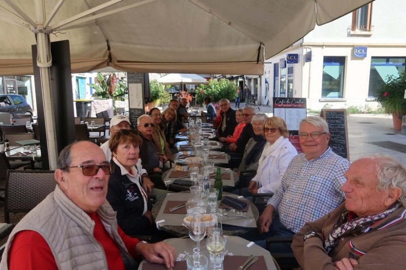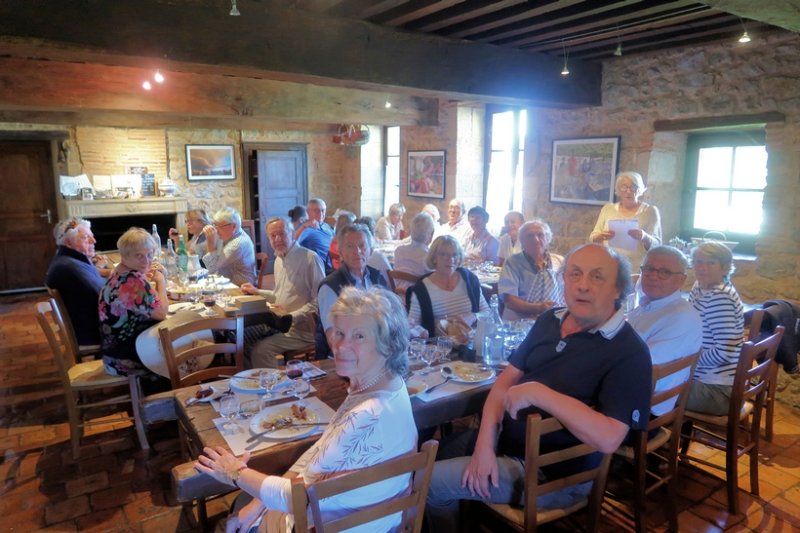 Visite studieuse effectuée, et après avoir demandé leur pardon, les membres reprennent leurs autos un peu éparpillées dans la petite ville. Mais pour la “berline comme Eric avec sa belle Jaguar” (Noëlle dixit) qui n’avait pas de GPS ce fut un peu la galère pour trouver la bonne “maison de pierre” parmi toutes les autres qui peuplent la région d’Amanzé. Ce n’est que grâce aux adorables Marie, Françoise et Alain gentiment sortis de table pour intercepter “la limousine” à son énième passage dans Amanzé que son équipage a enfin pu déguster un excellent déjeuner à l’auberge fantôme du coin.
