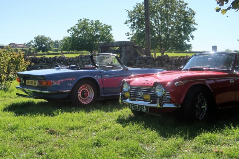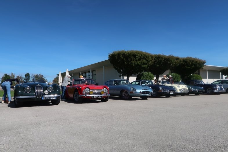 Nantua, puis Bourg sont doublés et vient la sortie de Vonnas. Là, on a le choix: à gauche on va chez Georges, c’est tentant, mais c’est à droite qu’il faut aller, à Pont de Vaux où Marc et Elizabeth Pozet arrivent aussi, non dans leur Mk2 mais dans leur MG F, première auto de la marque de l’ère post-MGB, rappelons-le (bien que conçue par Rover, mais chut!). Les autres autos finissent par arriver, mais la congestion locale due au marché les encourage à aller faire l’indispensable pause café un peu plus loin sur la route de Tournus.