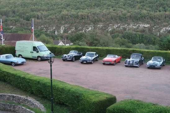 Slim Blue est réveillée à 7heures et demie en ce mercredi matin. Pour la E Type Genevoise du Club le premier but est de rejoindre les autres disciples de l’ANLVA à Pont de Vaux distant de 160 kilomètres. Dans la montée du Vuache, cette montagne plus large que haute qui barre la route vers Lyon, le bleu profond et sans tache du ciel tranche avec toute la gamme des verts possibles que la montagne renvoie, éclairée par le soleil levant. Il fait beau, ce genre de beau éclatant qui rassure le cœur.