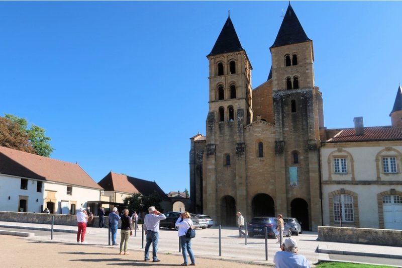 Le lendemain matin, le temps est toujours au beau fixe. Le son des moteurs de sportives Anglaises s’ébrouant dans la fraîcheur du jour levant a toujours ce côté magique et rassurant, avec le cérémonial de leurs conducteurs qui essuient les pare-brises embués par la rosée matinale pendant que les températures et les pressions d’huile se stabilisent. Car cette belle cavalerie doit maintenant rallier Parey-le-Monial et sa célèbre basilique, resplendissant témoignage de l’art roman.