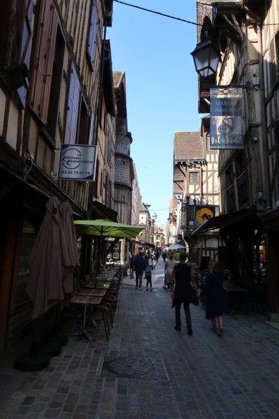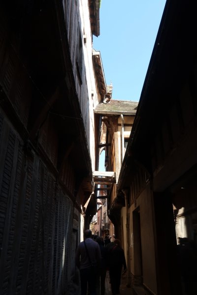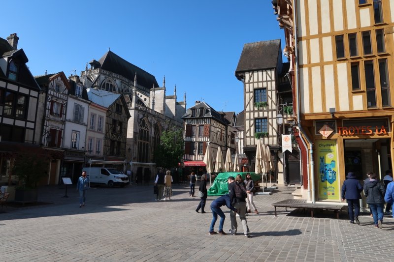 Notre visite s’appelle le « Bouchon de Champagne ». En effet, vue du ciel la ville est comme un bouchon, c’est assez singulier. Nous visionnons un petit film nous expliquant la naissance de Troyes, puis pendant la matinée, nous déambulons dans le vieux Troyes composé d’une multitude de vieilles maisons à colombages.