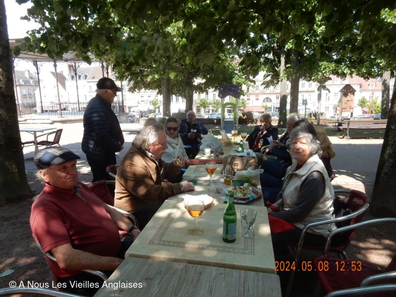 Rassemblement enfin de tous les participants sur la place du 8 Mai à Autun sur la terrace d'un bistrot complaisant où l'on célèbre nos retrouvailles en partageant nos pique-niques.