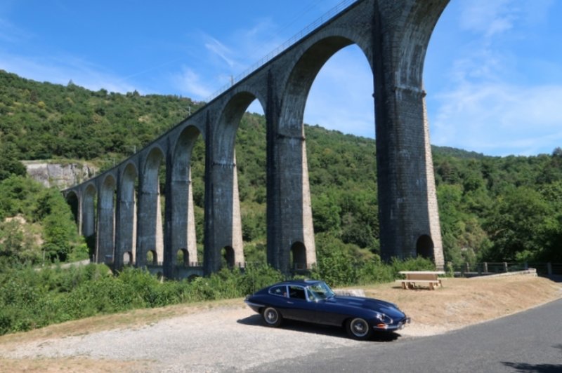 Coffres bien remplis de bulles contenues, nos Anglaises se ruent derrière notre guide Isabelle, pour former un chapelet roulant bigarré se coulant le long de la route sinueuse qui borde l’Ain jusqu’au fameux viaduc de Bolozon.