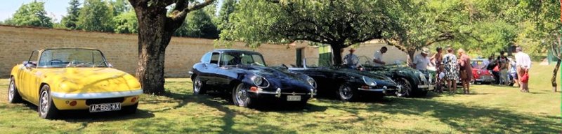 En fin d’après-midi, la E Type dit au revoir à ses amies Lotus, Jaguar, MG, Cooper et Triumph et franchit à nouveau ce beau portail vert avec un petit pincement au carburateurs avant de pointer son nez en direction de Genève, cette fois-ci.